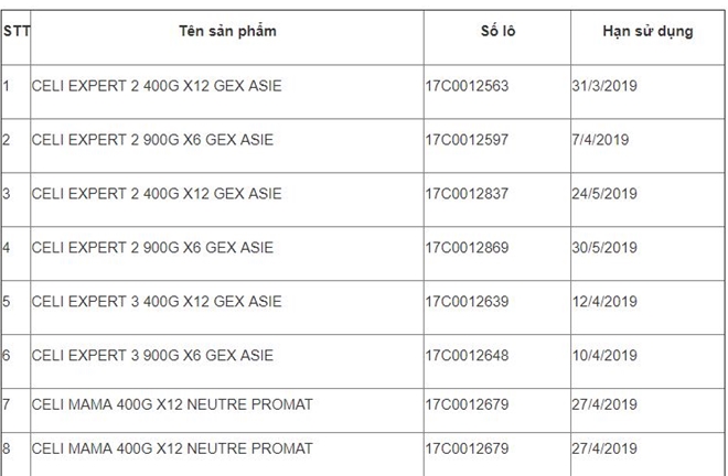 Tuy nhiên trong thời gian chờ kết quả kiểm nghiệm, Cục An toàn thực phẩm đề nghị các tổ chức, cá nhân tạm thời ngừng tiêu thụ và sử dụng các sản phẩm có tên và số lô như trong hình.