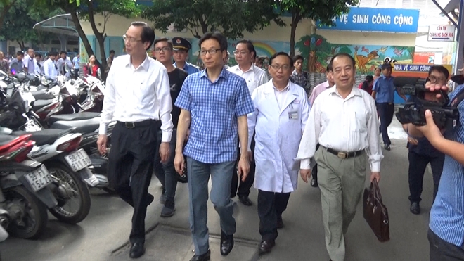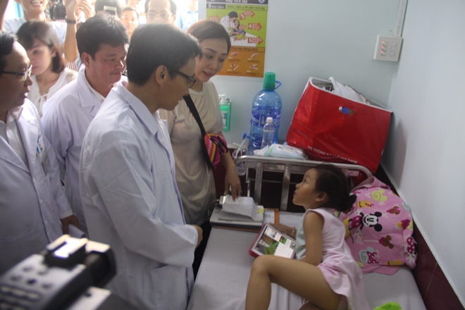 Chiều cùng ngày, Phó Thủ tướng Vũ Đức Đam cũng đã tới BV Nhi đồng 1 TP HCM hỏi thăm các y bác sĩ về tình hình chữa trị cho những trường hợp trẻ mắc tay chân miệng (TCM), sởi và sốt xuất huyết.