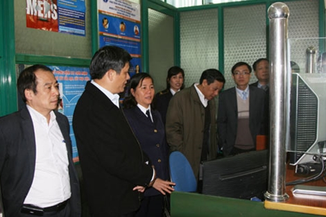 | Lãnh đạo Bộ Y tế kiểm tra công tác phòng dịch tại cửa khẩu. |