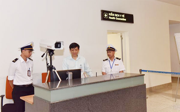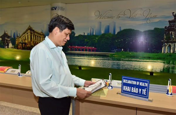 | Thứ trưởng Bộ Y tế Nguyễn Thanh Long trực tiếp kiểm tra công tác khai báo y tế tại sân bay Nội Bài. |