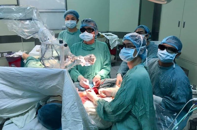 Đây thực hiện được ca phẫu thuật khó này, Trung tâm Chấn thương chỉnh hình - Phẫu thuật tạo hình, Bệnh viện Trung ương Huế đã sử dụng kính vi phẫu Vtom 3D nhằm phóng đại hình ảnh cực lớn, được hiển thị trên các màn hình nhằm hỗ trợ tốt hơn cho quá trình phẫu thuật. Sau 4 giờ đồng hồ, ca phẫu thuật đã thành công, các thông số chuyên môn đều được bảo đảm tốt đối với bệnh nhân H..