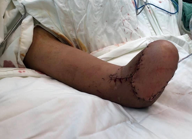 Trước đó, em Đàm Văn H. 16 tuổi (ở thôn Hưng Lộc, xã Quảng Hưng, huyện Quảng Trạch, tỉnh Quảng Bình) gặp tai nạn lao động, tay phải bị cuốn vào máy xay khiến em H. bị dập nát, hư hại hoàn toàn phần mềm và xương vùng cẳng, bàn tay phải.