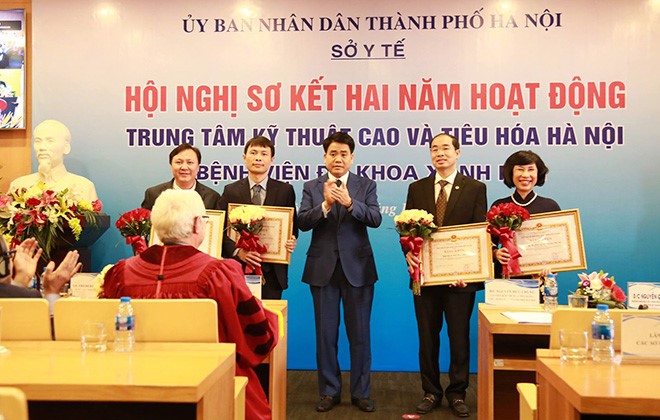 UBND TP Hà Nội cũng tặng Bằng khen cho 4 tập thể và 8 cá nhân có đóng góp vào sự phát triển của Trung tâm Kỹ thuật cao và Tiêu hóa Hà Nội.