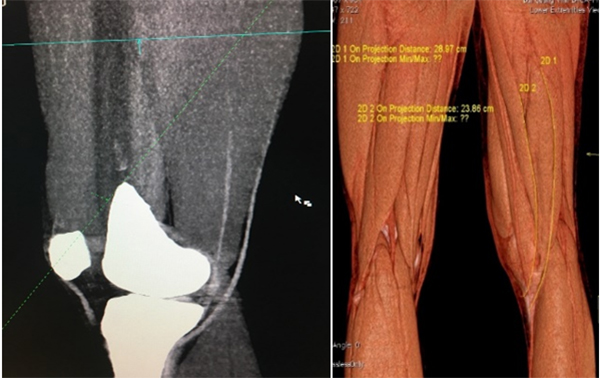 | Hình ảnh dựng hình 3D trên CLVT đo kích thước gân trước mổ. |