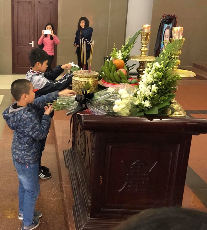 | Cô giáo và các bạn trong lớp của Hải An đã đến chia tay em lần cuối. Những khuôn mặt xinh xắn thơ ngây mang theo những bó hoa cúc trắng đến viếng Hải An, vừa để tiếc thương nhưng cũng để tự hào vì người bạn nhỏ. |