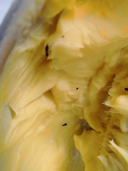 | Những vật dụng chứa bơ dùng trong nguyên liệu làm bánh mì tại cơ sở bị côn trùng xâm nhập |