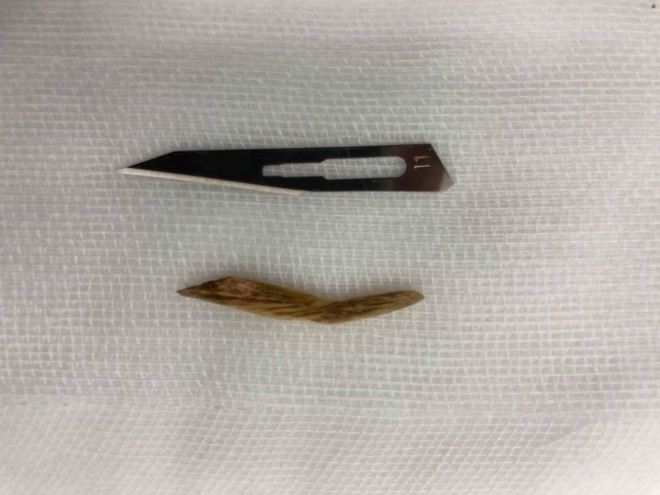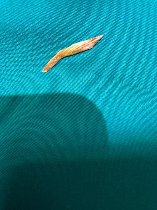 | Mảnh xương cá được lấy ra từ người nam bệnh nhân 42 tuổi. |