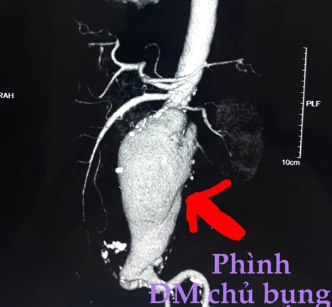 Người bệnh được chụp CT-scan có bơm cản quang. Kết quả hình ảnh cho thấy động mạch chủ bụng bị thủng 1 lỗ đường kính khoảng 2cm, tạo thành túi phình giả quanh động mạch chủ kích thước lớn, đường kính 6,5cm kéo dài 8,8cm. Các bác sĩ chẩn đoán đây là một trường hợp nhiễm trùng sau phúc mạc, ổ nhiễm trùng ăn thủng động mạch chủ bụng dưới thận tạo thành túi phình giả, nguy cơ vỡ khiến người bệnh tử vong bất cứ lúc nào.